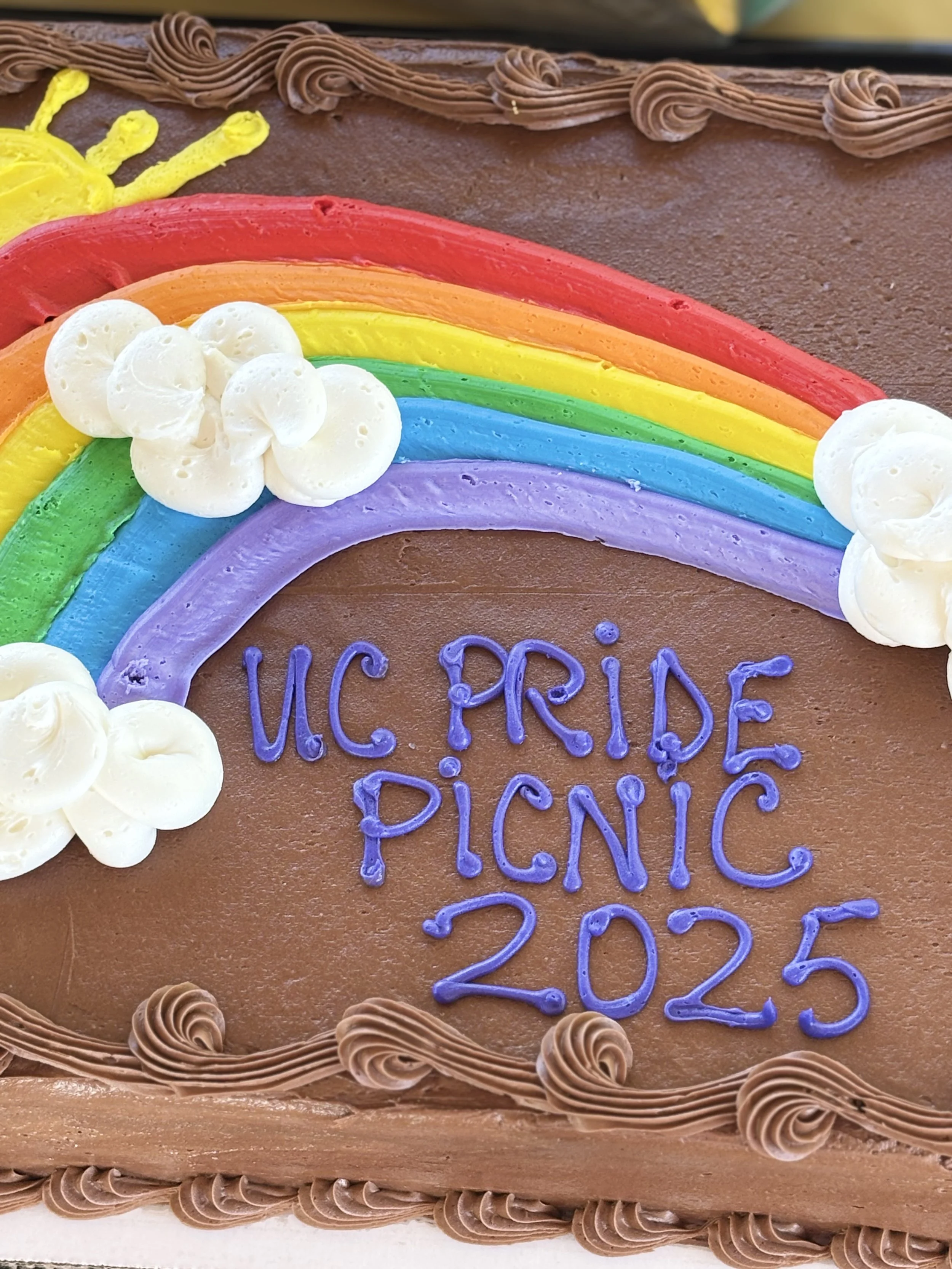 June 27, 2025 - A big thank you to everyone who was able to join us for the UC Pride Picnic 2025! It was a beautiful, sunny afternoon of tie-dye, corn hole, sidewalk chalk, music, food and great company. We had over 60 community members and family join us for our inaugural event!